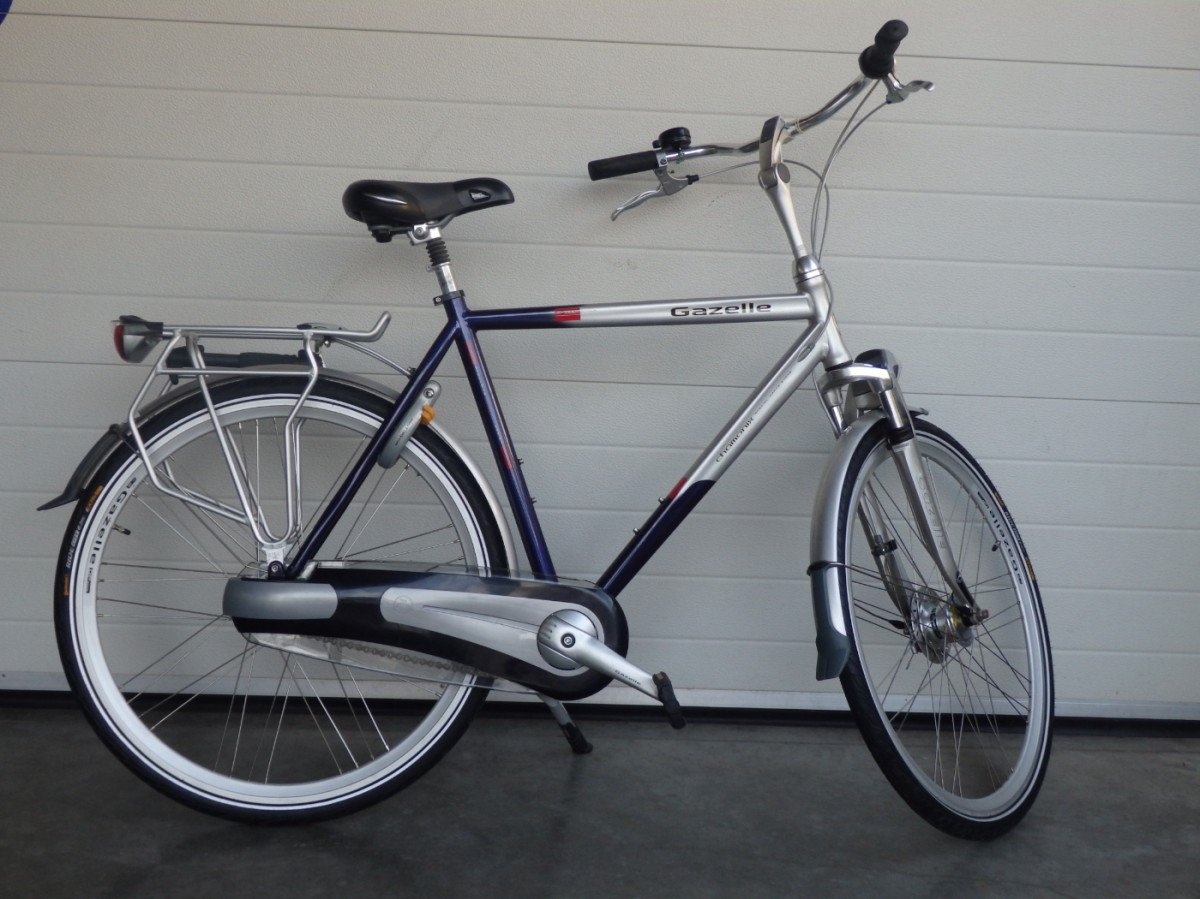 Mooie Gazelle gebruikte herenfiets met frame maat 57 cm, 8 versnellingen in een mooie blauw zilveren kleurstelling.