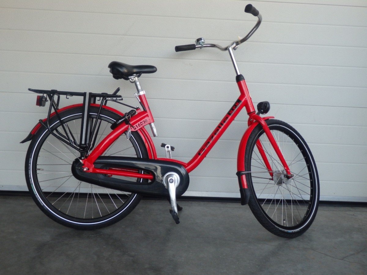 De ultieme allround fiets geschikt voor in en om de stad of zwaar te beladen, makkelijk op hoogte te stellen door snelspanner op het zadel compleet met naafdynamo en terugtraprem.Gebruikt